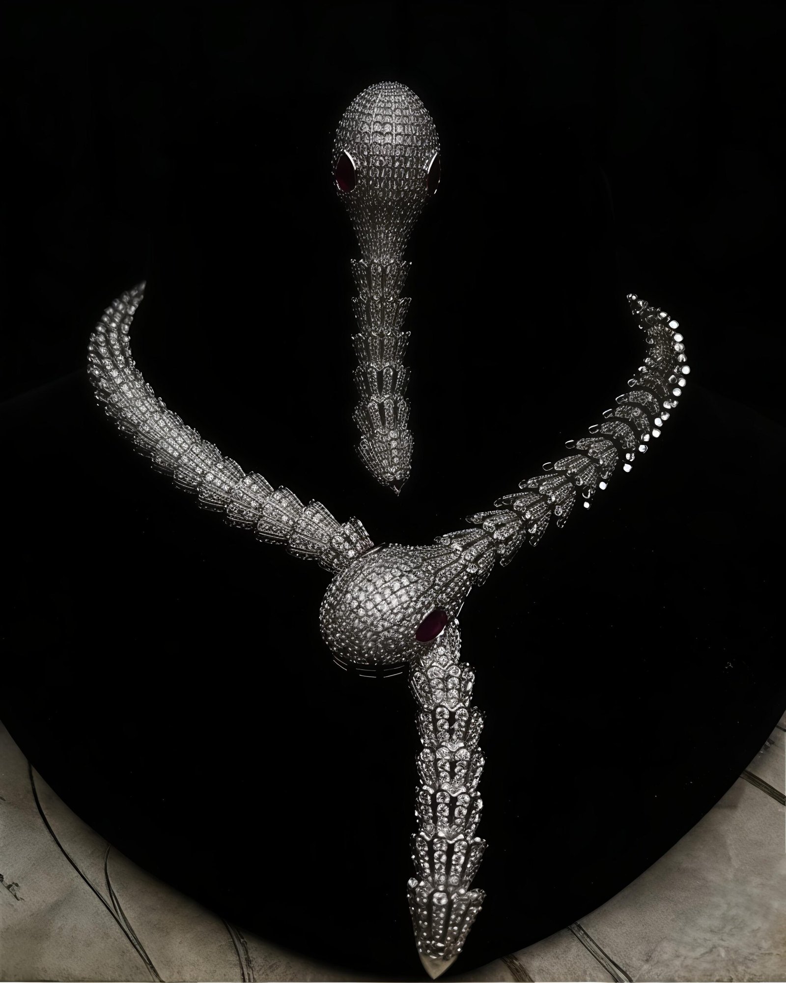 Make a bold and luxurious statement with the BYKOUE Regal Serpent AD Necklace Set, a masterpiece inspired by the powerful elegance of a snake motif. Crafted with high-quality American Diamonds, this necklace showcases intricate scale-like detailing that flows gracefully around the neckline, culminating in a striking serpent head pendant accented with subtle ruby-toned highlights.