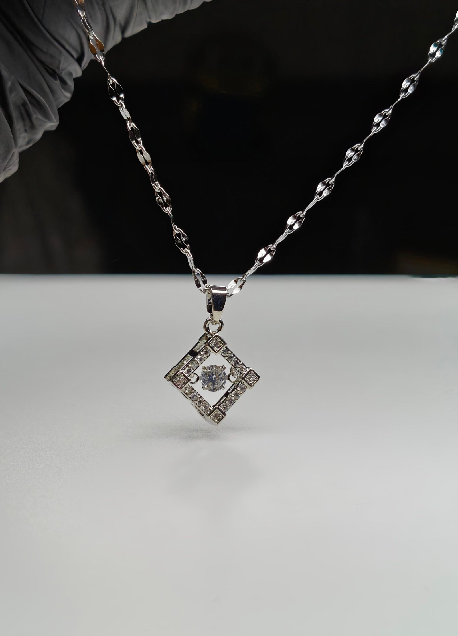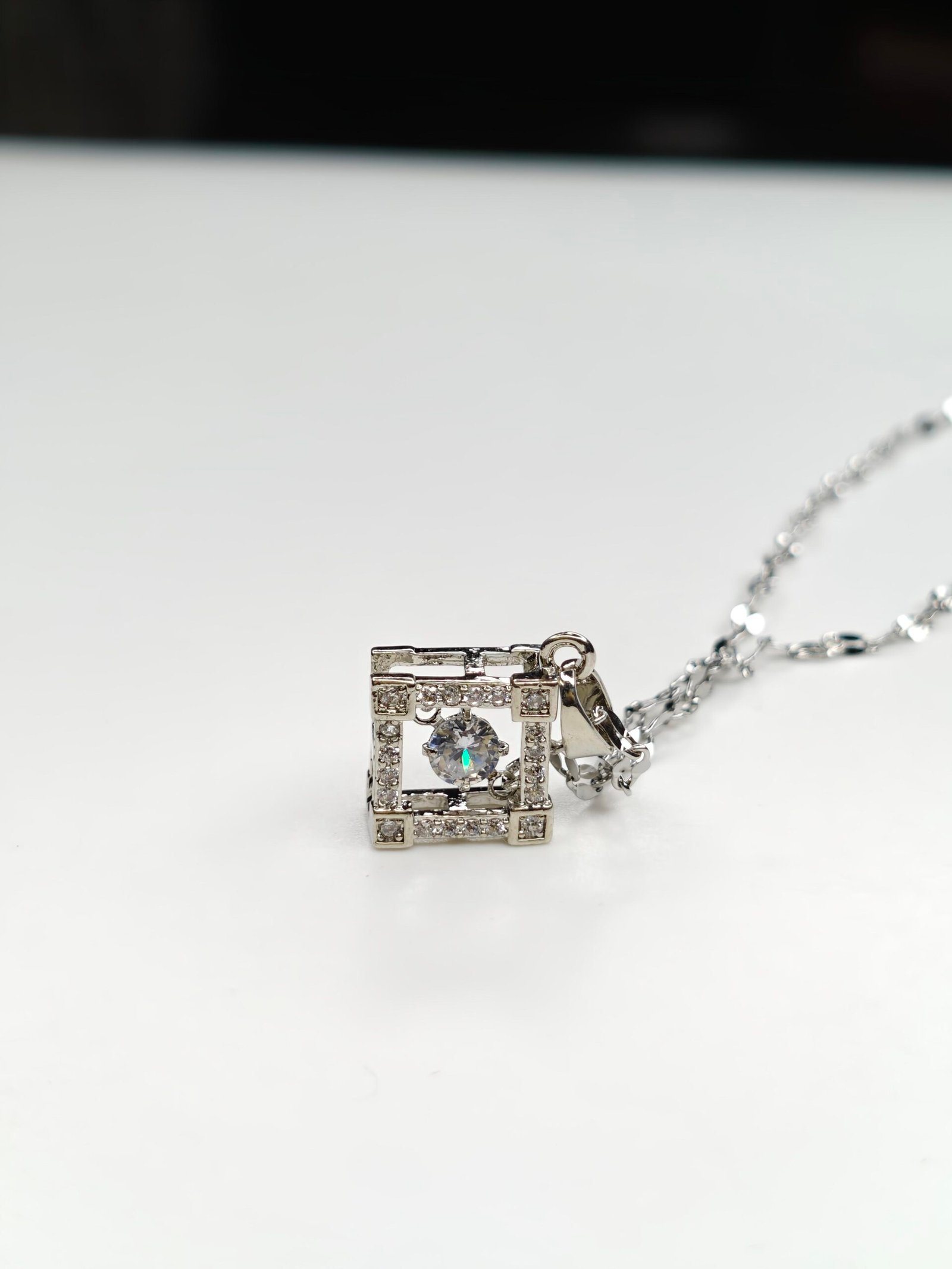 Be the first to review “Geometric Crystal Square Pendant Necklace – Silver Finish”