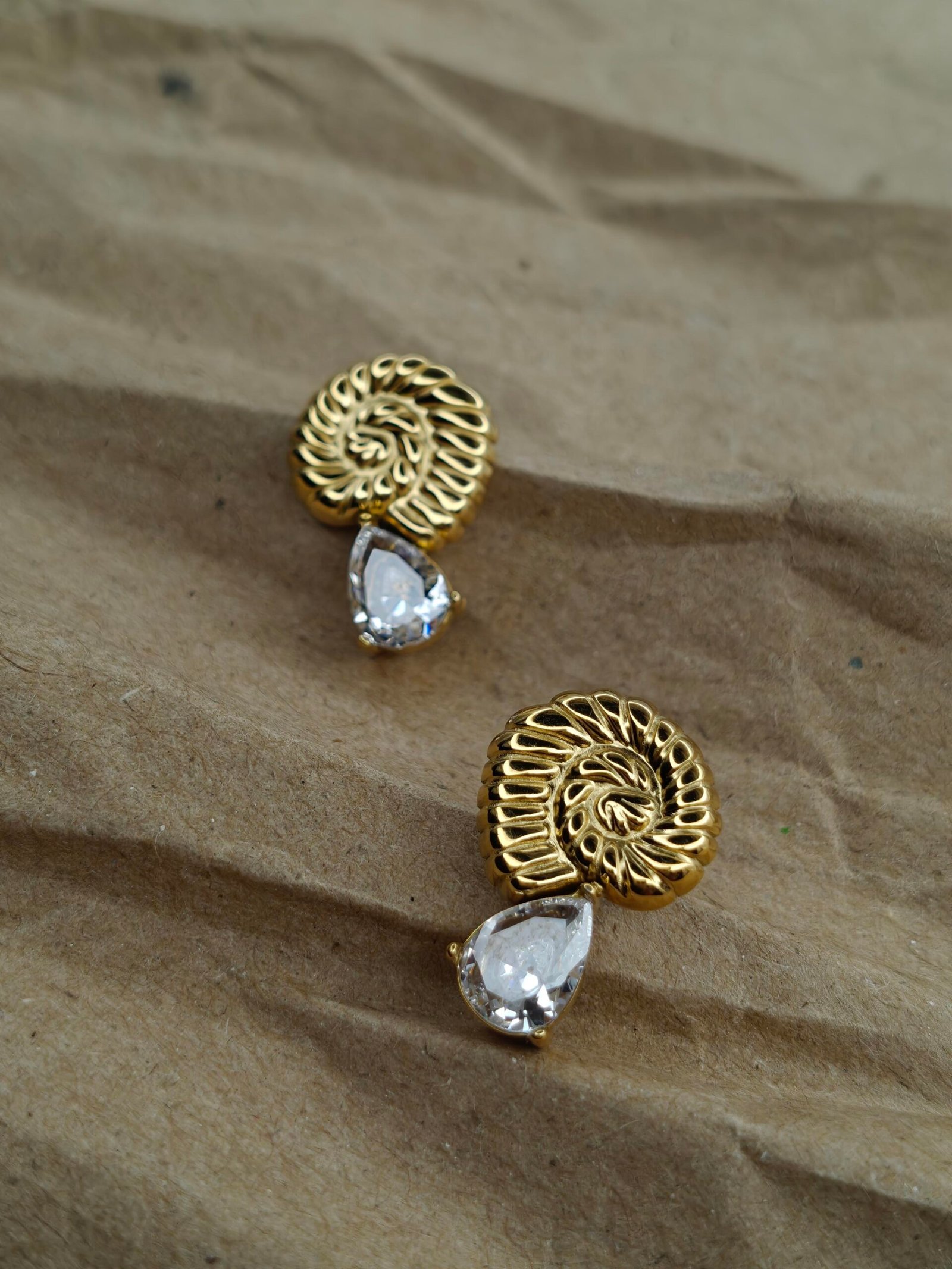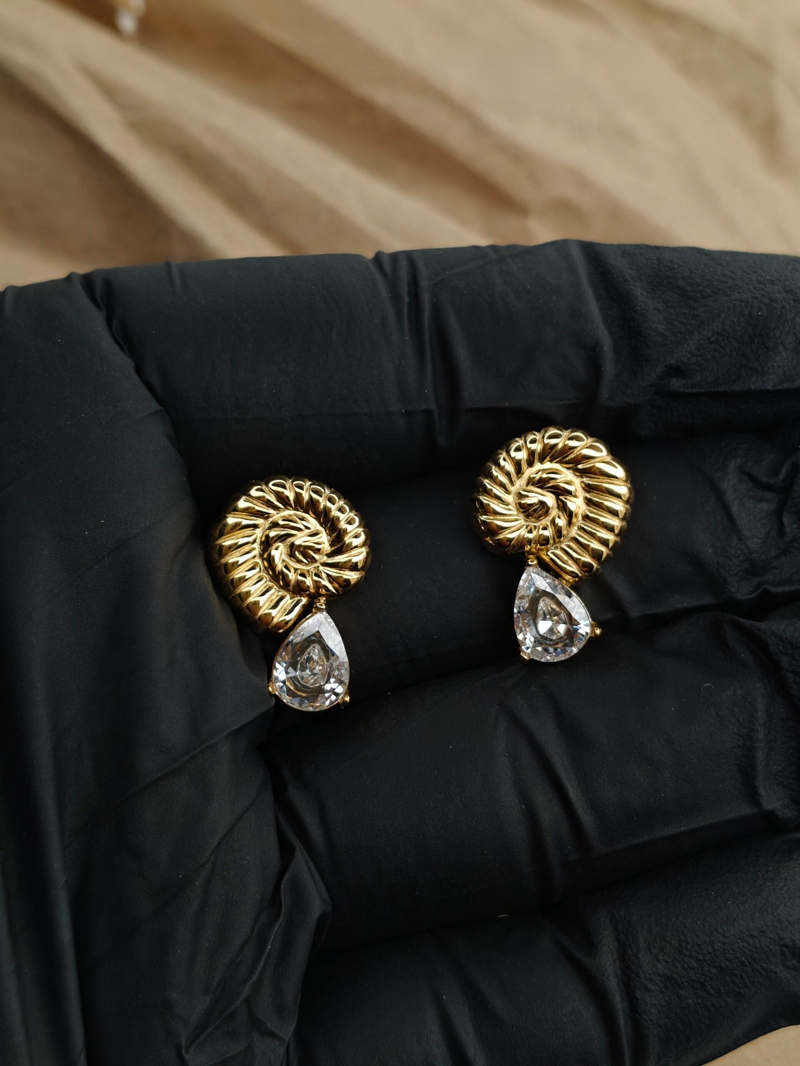 Be the first to review “Gold-Tone Spiral Stud Earrings with Crystal Teardrop”